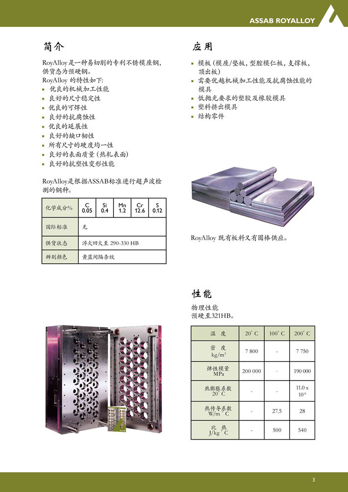 瑞典進(jìn)口RoyAlloy塑膠模具鋼:不銹模座鋼,具有出色的機(jī)加工性能和抗腐蝕性能...